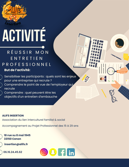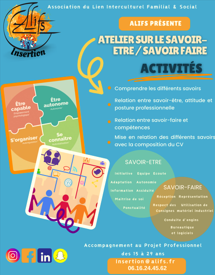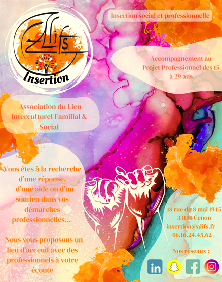 C’est la concrétisation suite à la réussite du projet Décolle, l’entreprise réussite porté par ALIFS (2015-2018) en direction des NEETS et qui a eu pour résultat, la recherche et l’accompagnement de plus de 300 jeunes dont 85% de NEET, action ayant contribuée à plus de 85% de sorties positives. L’objectif premier du pôle ALIFS Insertion est de venir en aide au public le plus éloigné du marché du travail et des institutions en animant un réseau d’acteur proche ou en contact avec lui, en levant les freins à son insertion par les audits juridico administratif ou en réduisant les fractures numériques et enfin en mobilisant ses compétences par des actions individuelles et collectives. Ce projet met en place des outils préventifs et curatifs en réponse aux enjeux d’exclusion du marché du travail et de la marginalisation qui en découle. Nos actions auront pour finalité de travailler sur l’acquisition de compétences relationnelles et de savoirs de base par le biais de modules de formation participatifs et non directive sur les thématiques de la citoyenneté, du monde du travail en utilisant comme outil les moyens de communication dont la radio et les pratiques artistiques.